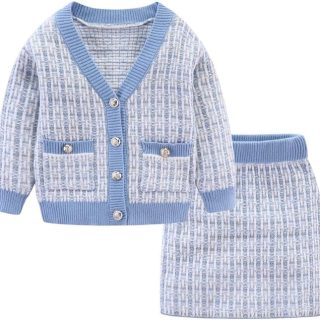 Mud Kingdom Cute Little Girls Ribbed Knit Cardigan Skirt Set Style