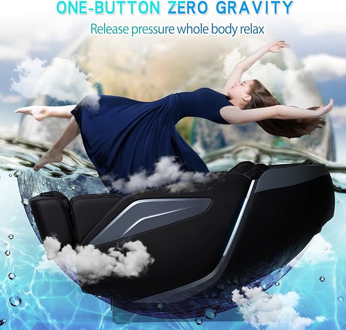 - ✔️【ZERO GRAVITY MASSAGE & YOGA STRETCH】 Experience the benefits of the yoga stretch, which includes frame and backrest rise and fall, air pressure massage, and leg stretching or traction. This helps to eliminate fatigue and rejuvenate your body. The zero gravity feature offers 4 levels of zero gravity angles, reducing heart pressure and relaxing your body muscles. With added Bluetooth audio and ambient LED lighting, you can reach a completely relaxed state.