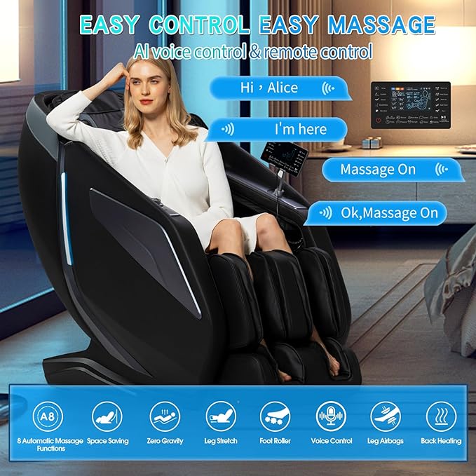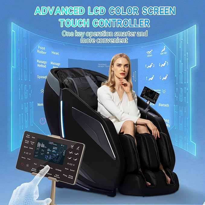 - ✔️【3 OPERATION METHODS】 Enjoy effortless control of our massage chair with three convenient operation methods. The LCD screen clearly displays all the functions, allowing for easy navigation. With AI Voice control, you can use your voice to wake up and control the chair, making it a truly hands-free experience. Additionally, the armrest shortcut keys provide quick access to frequently used functions. There is a USB charging adapter with a Type-C connector for your convenience.