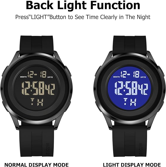 - [Perfect Alternative] This simple and ultra-thin mens digital watch has taken our designers over 30 months to develop. It effectively addresses various issues that previous digital watches have encountered:poor readability, dim lighting, lack of waterproofing, unresponsive buttons, and low durability, among others. It is an flawless substitute for smart watch. If your salary permits, it is recommended to purchase one of these watch for men because it will garner you a lot of admiration.