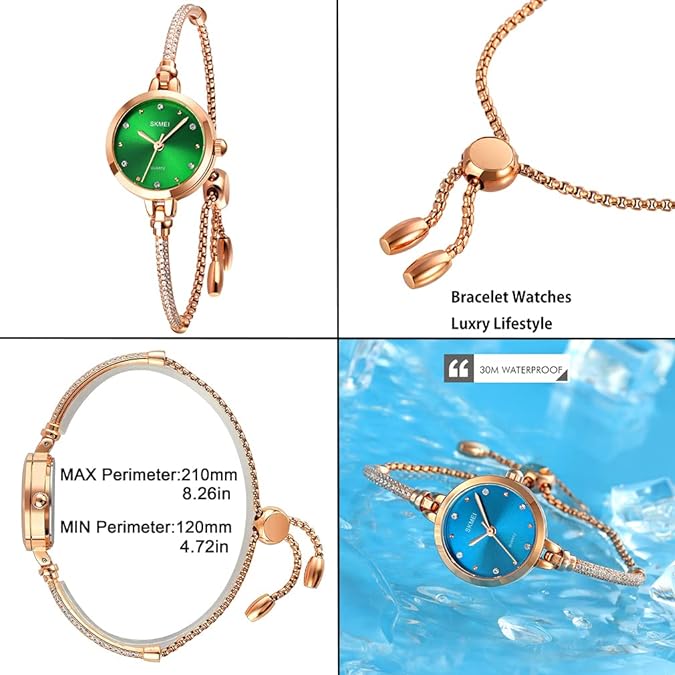 • SKMEI Watches for women diamond bracelet luxry fashion. Exquisitely designed and firmly set. Elegant dial design with exquisite watch-making craftsmanship brings you the most ideal wearing experience. Wearing this watch from business, leisure to daily use on indoor and outdoor activities, It is suitable for you and your friends as the best presents .