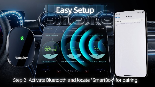 • 【Effortless Plug and Play】Quick to start using the CarPlay adapter with only a 3-step setup without the need for additional apps or drivers. Once paired, it will automatically reconnect to your device every time, ensuring a hassle-free connection for every journey. Perfect for on-the-go convenience and consistent performance.
